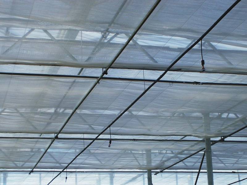 Данное покрытие, как правило, используется для затенения и охлаждения теплицы. Затеняющая сетка позволяет организовать рассеяное освещение без прямого воздействия солнечных лучей. Данная конструкция эффективно защищает посевы от сильного солнечного света и чрезмерного накопления тепла внутри теплицы. За счет того, что затеняющая сетка пропускает только часть солнечного света, температуру в теплице можно снизить на 4℃-6℃. Кроме того, данное покрытие устойчиво к ультрафиолетовым лучам и граду. Также, использование затеняющей сетки позволяет снизить потенциальную опасность для крыш теплиц.