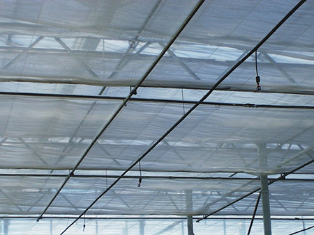 Затеняющие сетки могут использоваться в качестве перегородки в теплице, также эффективно обеспечивают сопротивление запотеванию.