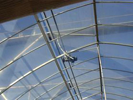 - Максимальный угол открывания форточек равен 30◦. Угол открывания можно регулировать в зависимости климатической разницы внутри и снаружи теплицы. При этом площадь вентиляционной фрамуги равна 20% от кровли теплицы.