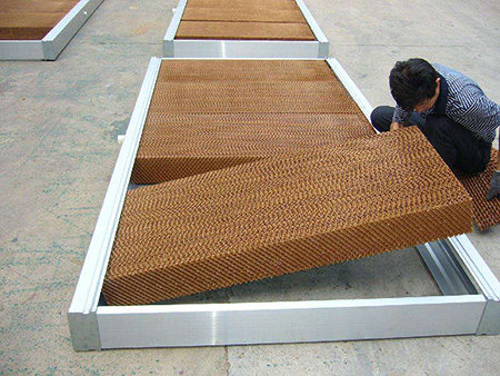 Гофра панели испарительного типа специально разработаны для охлаждения теплиц путем естественного испарения. Панели испарительного типа быстро поглощают воду и обеспечивают значительную поверхность соприкосновения воды с воздухом. Когда сухой горячий воздух проходит сквозь влажную гофра панель происходит процесс испарения: воздух охлаждается и насыщается влагой. И с помощью вентилятора охлажденный воздух продувается в теплицу для охлаждения и увлажнения воздуха.